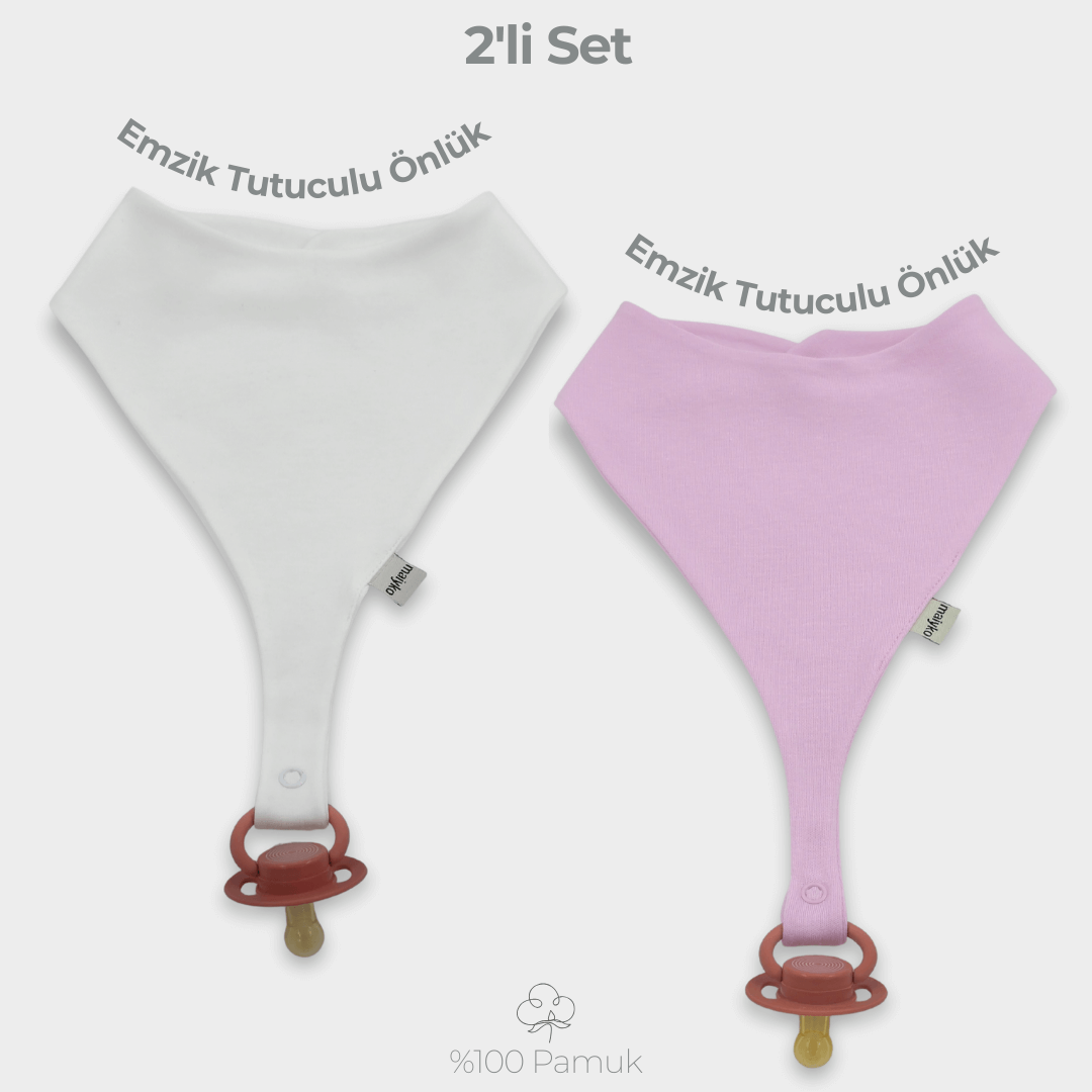 2 adet Emzik Tutuculu Önlük - Emziğin kaybolmasını önler, hijyenik kalmasına yardımcı olur.