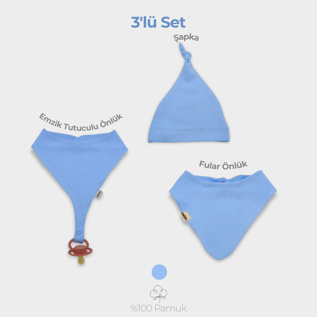 3'lü Aksesuar Set %100 Pamuklu (Mavi)