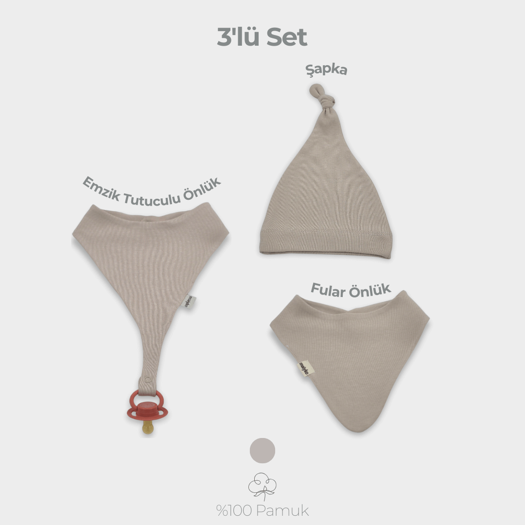 3'lü Aksesuar Set %100 Pamuklu Taş Rengi