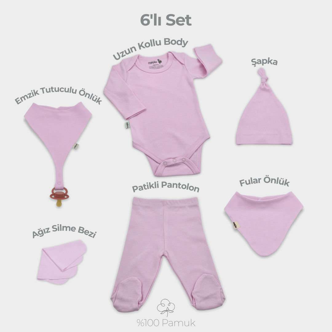 6'lı Yenidoğan Seti %100 Pamuk Pastel Pembe