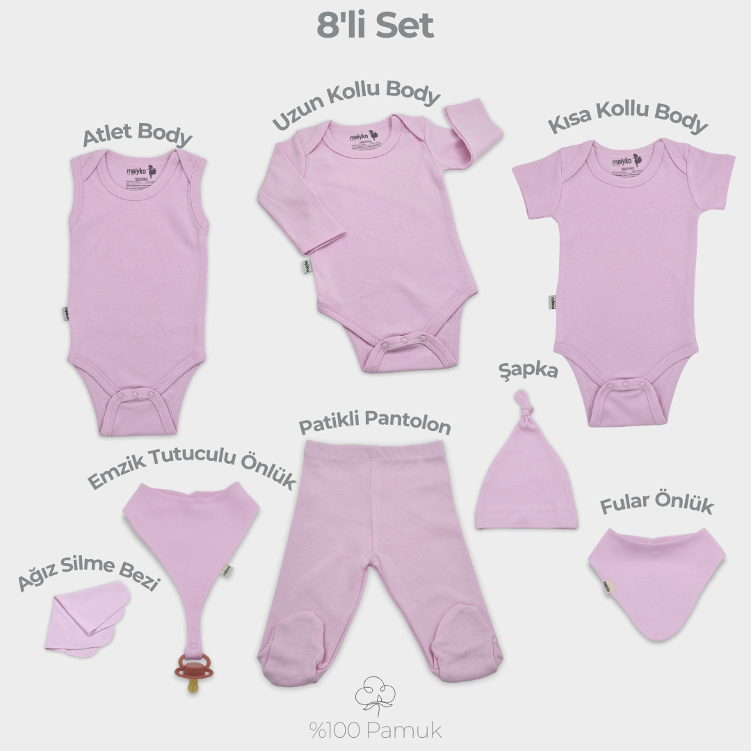 8'li Yenidoğan Seti %100 Pamuk Pastel Pembe