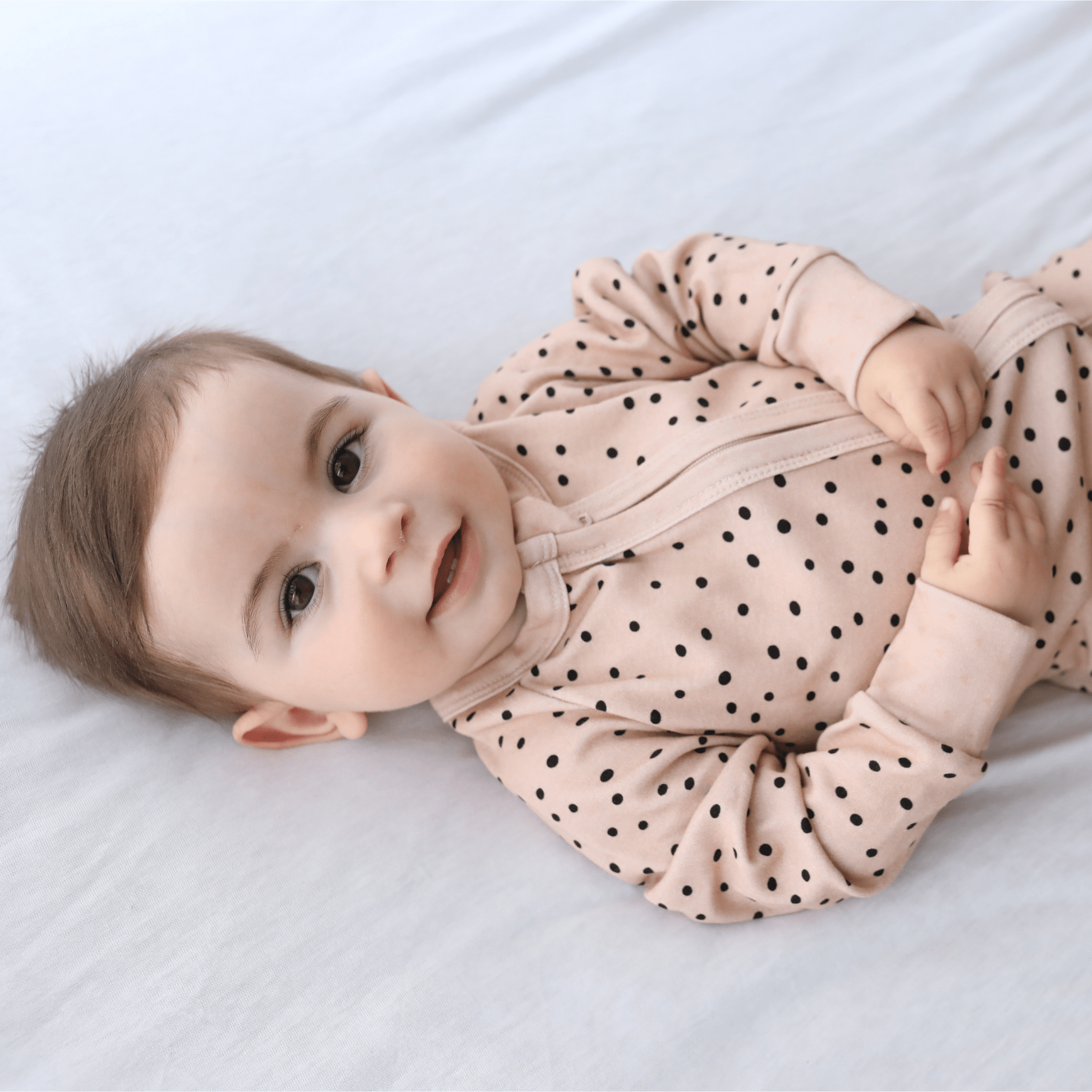 Bizim 1.0 TOG değerine sahip %100 pamuklu bebek tulumumuz, özellikle 20°C – 24°C arasındaki oda sıcaklıkları için idealdir.