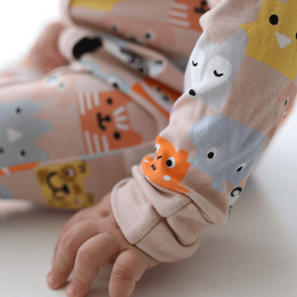 Organik Pamuklu ve Modal Karışımlı nefes alan, yumuşacık kumaşlarıyla Maiyko bebeğinizin hassas tenini korur. Baskılarımız bitki bazlı, sertifikalı boyalarla hazırlanır; kimyasal kalıntı içermez.